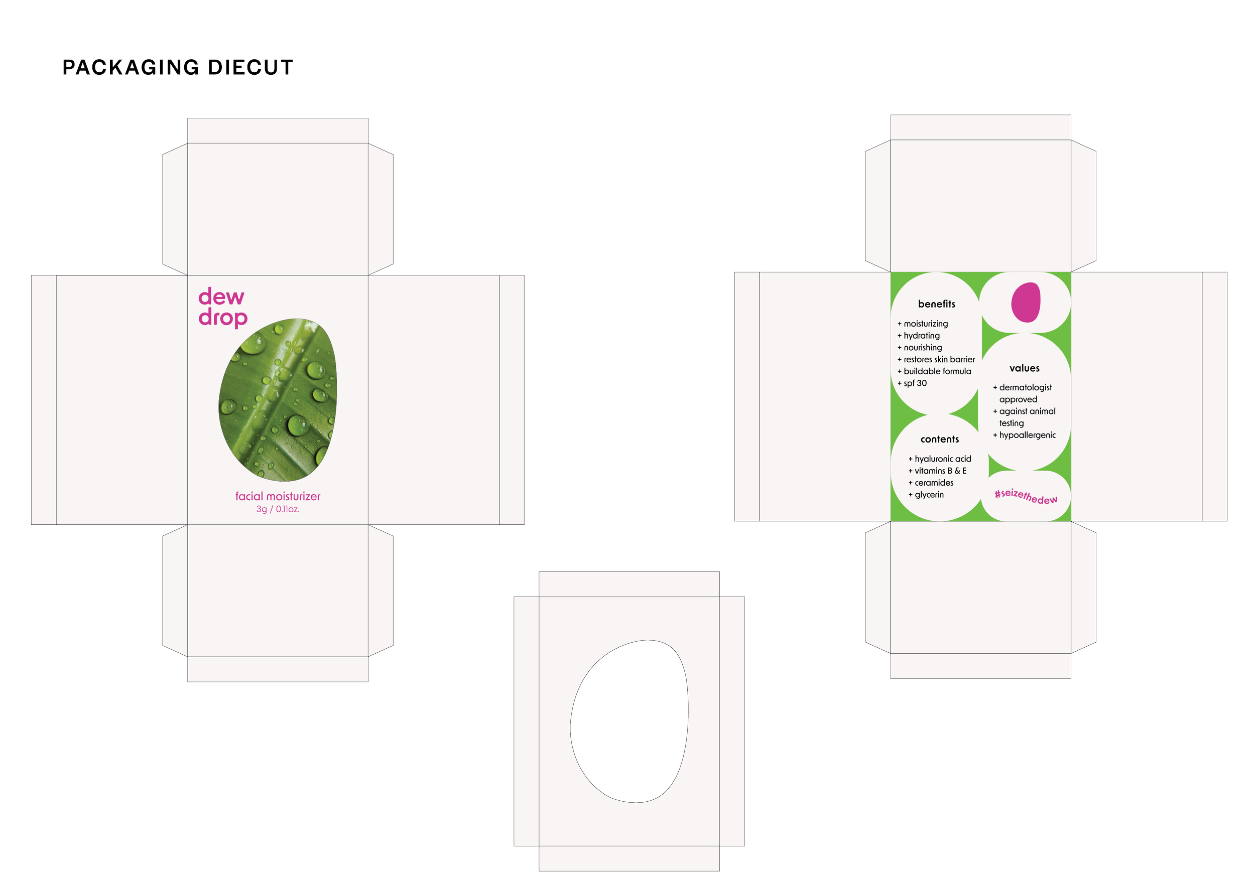 Inspired by existing beauty and cosmetic brands like Glossier, Sunnies Face, Fenty Beauty, and Pleasing, I decided to created my own skincare product and brand. Since I am passionate about this industry in design, the brand came very naturally to me. I started with a simple organic shape as the logo, connected it to a strong skincare principle (feeling and looking dewy), and built the brand’s statement and visual elements.
